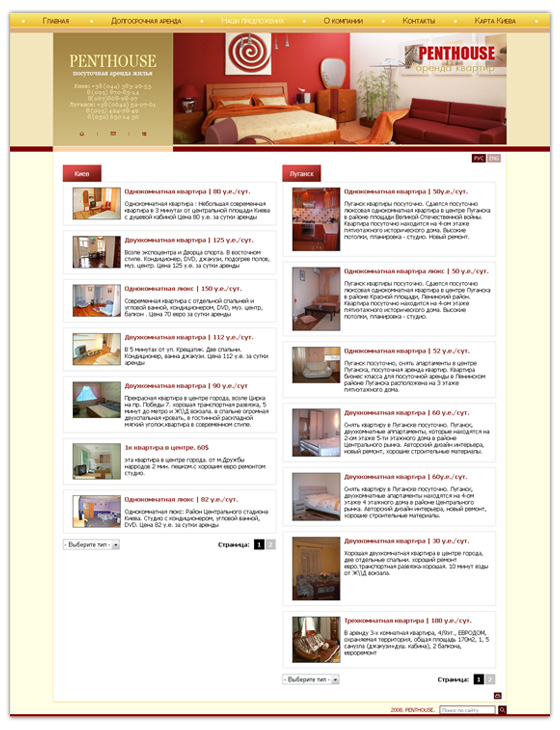 Компания Penthouse специализируется на аренде жилья в Киеве и Луганске. Разработка сайта производилась с "нуля" и "под ключ".