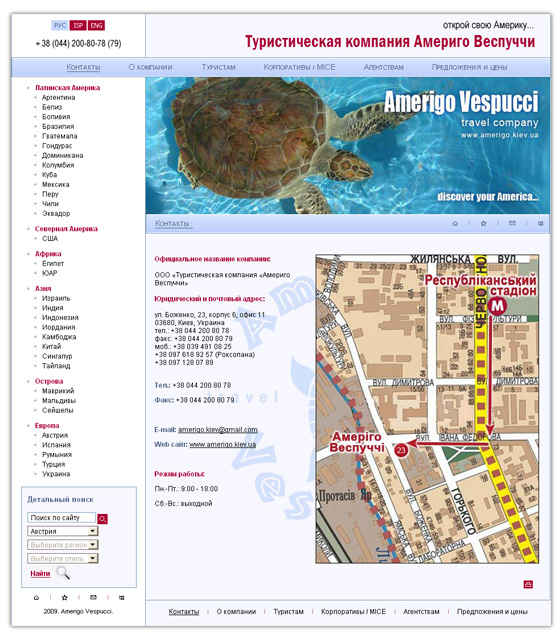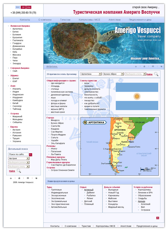 Корпоративный сайт туристической компании Америго-Веспуччи