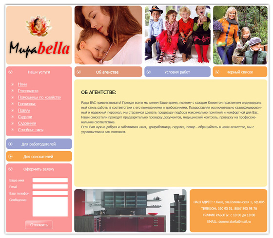 Компания МираBella является агенством по подбору персонала. Разработка сайта производилась с "нуля" и "под ключ".